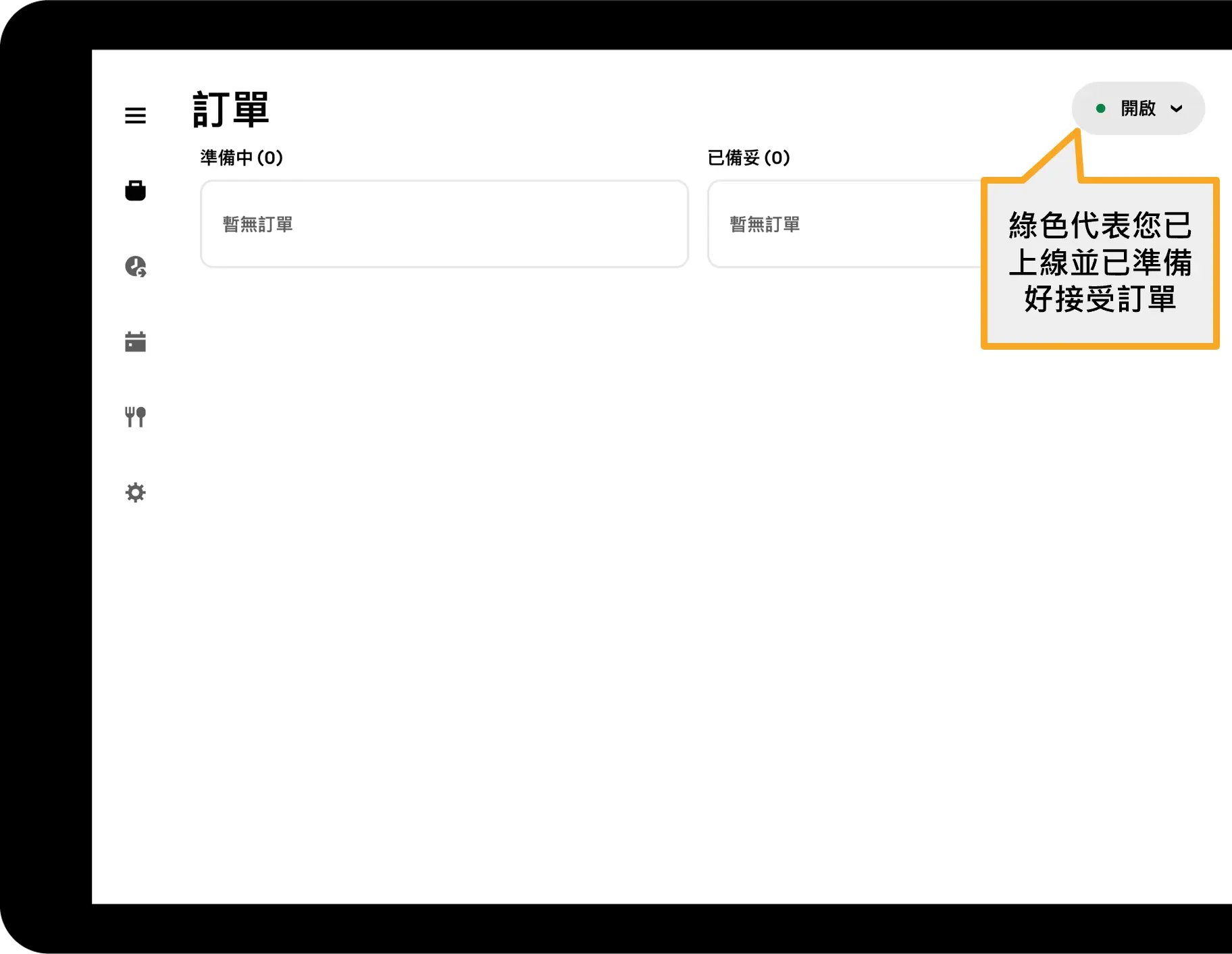 上線時請開啟接單畫面,並將平板維持在開啟狀態。