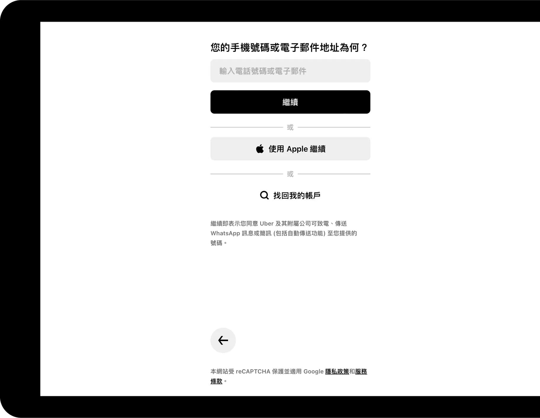 請輸入您的 Uber Eats 接單前台帳號和密碼。 特別注意!若輸入錯誤的資訊太多次,系統可能會暫時鎖定您的帳戶長達一小時。